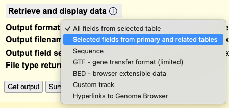 You can limit the output to a specific region or get data genome-wide. Whole-genome output may be unavailable for some tracks due to the large amount of data.